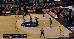 杨瀚森造成对手犯规,随后两罚全中得到NBA生涯首分
